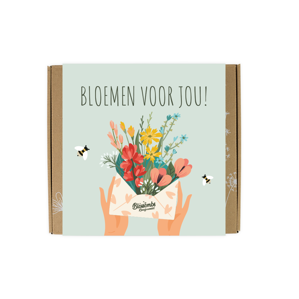 Das Blossombs Medium Geschenkset eignet sich ideal zum Geburtstag, als Dankeschön, zum Muttertag oder einfach als fröhliche Überraschung. Die Verpackung passt in den Briefkasten und sieht wunderschön aus – mit fröhlichem Blumenmuster und dem Text „Blumen für Dich!“