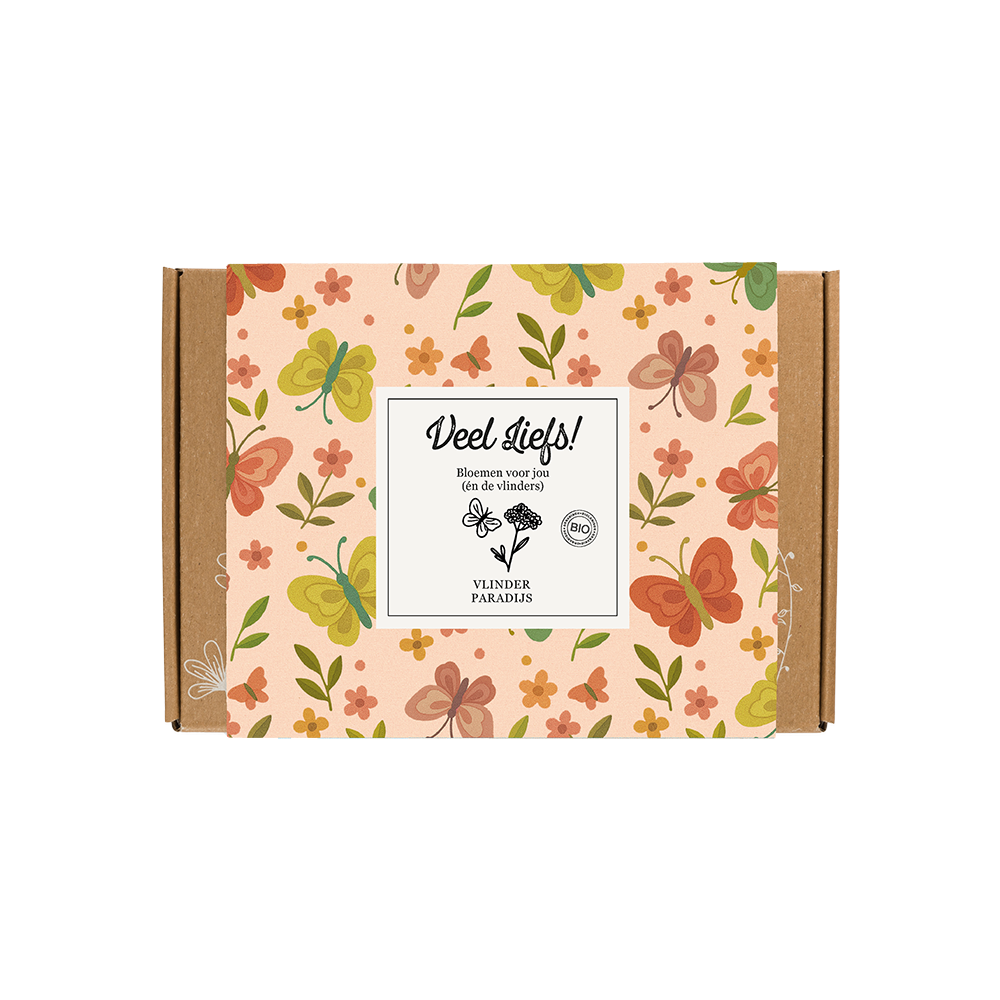 Gevuld met wel 7 Vlinder Paradijs Blossombs zorgt deze Gift Box voor een explosie van kleur! Plant de Blossombs in volle grond of in een potje, geef water en voor je het weet heb je een klein paradijsje gecreëerd. Voor jou, maar ook vooral voor de vlinders. Zij smullen namelijk enorm van iedere bloem in deze mix!