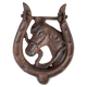 Hängen Sie den traditionellen gusseisernen Türklopfer mit dekorativem Hirschkopf neben die Vorder- oder Hintertür, damit sich Gäste bemerkbar machen, wenn sie eintreten möchten. Dieser rustikale Türklopfer aus Gusseisen wird nach uralter Handwerkskunst und Tradition von Hand gegossen.