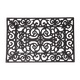 Diese rechteckige Fußmatte ist schön für draußen oder drinnen. Die Fußmatte hat einen klassischen viktorianischen Rand mit anmutigen Locken. Der Kokosnussteil enthält einen Text, der den Gast entweder begrüßt oder begrüßt. Durch die robuste und langlebige Bauweise und dank der Gummi- und Kokosbürsten wird hartnäckiger und grober Schmutz aus dem Schuhwerk entfernt. Der Vorteil einer Gummifußmatte ist, dass die Matte nicht verrutscht.