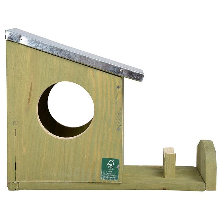 Dieser Eichhörnchen-Erdnussbutter-Futterspender der Marke Esschert Design ist, wie der Name schon sagt, ein Fütterungssystem zum Füttern von Eichhörnchen-Erdnussbutter. Erdnussbutterglas nicht enthalten. Sie stellen ein offenes Glas Erdnussbutter auf die Außenseite des Futterhauses, wobei die offene Seite des Glases zum Haus zeigt, und dann kann das Eichhörnchen in das Haus selbst kriechen, um die Erdnussbutter zu naschen. Da sich das Erdnussbutterglas auf der Außenseite befindet, können sowohl Sie als auch die Eichhörnchen die Erdnussbutter sehen, sodass Sie leicht sehen können, wie viel Erdnussbutter noch im Glas ist. Das Eichhörnchen kann das Haus durch die Eingangslöcher betreten und Sie können das Eichhörnchen sehen. Durch den geschlossenen Teil ist das Eichhörnchen sofort vor Feinden geschützt. Eichhörnchen lieben Erdnussbutter. Mit diesem Erdnussbutter-Futterspender locken Sie Eichhörnchen in Ihren Garten, besonders wenn Sie in einem Waldgebiet leben. Durch das vorgebohrte Loch im Holzrahmen können Sie den Eichhörnchen-Erdnussbutter-Futterspender ganz einfach in Ihrem Garten an einem Baum, Zaun oder einer Mauer aufhängen. Der Futterautomat ist aus FSC-zertifiziertem Fichtenholz gefertigt und hat ein Zinkdach. Leider sterben immer noch Eichhörnchen oder können wegen unzureichender Nahrung nicht nisten. Mit Hilfe des Eichhörnchen-Futterspenders können Sie den Eichhörnchen in den Niederlanden helfen. Neben der Hilfe für das Eichhörnchen mit diesem speziellen Erdnussbutter-Futterspender sorgen Sie auch dafür, dass Eichhörnchen weniger wahrscheinlich an den Vogelhäuschen / Vogelhäuschen in Ihrem Garten naschen! oder als Unterschlupf gegen Marder, Greifvögel, Hunde oder Katzen dienen. Ein Eichhörnchen kann im März/Mai bis zu 8 Junge zur Welt bringen, wenn es genug Nahrung gibt. Wenn nicht genug Nahrung zur Verfügung steht, werden die Jungen etwa im Juli/September geboren. Nach etwa 8 Wochen sind die Jungen außerhalb des Nestes zu sehen. Anwendervorteile: FSC-zertifiziertes Fichtenholz Natürliches Aussehen Eichhörnchen anlocken und halten in Ihrem Garten