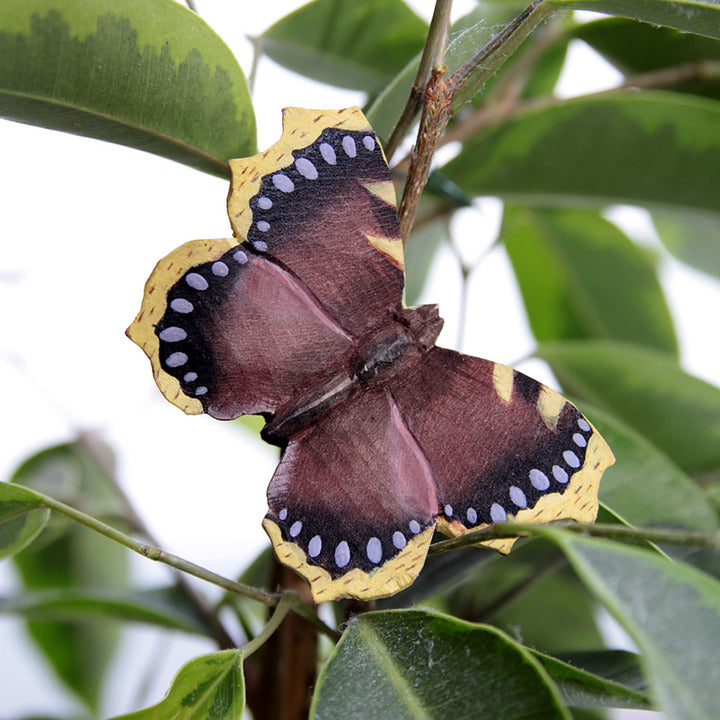 Die handgefertigten Schmetterlinge von Wildlife Garden können drinnen und draußen zur Dekoration verwendet werden. Dank des Magneten auf der Rückseite können die Schmetterlinge zum Beispiel als Kühlschrankmagnete verwendet werden. Die Schmetterlinge können mit dem mitgelieferten Draht auch zum Dekorieren von Blumen und/oder Pflanzen verwendet werden. Auf den ersten Blick könnte man beim Anblick des Trauermantels meinen, es sich um einen echten Schmetterling zu handeln, der jeden Moment auf dem Weg zur nächsten Blüte davonfliegen könnte. Unsere Schmetterlinge erheitern Ihre Pflanzen, auch wenn sie nicht blühen. Die DekoSchmetterlinge sind ein schönes Geschenk für sich selbst oder für andere. Die Schmetterlinge sind handgefertigt aus Lindenholz und von Hand bemalt. Die verwendete Farbe ist selbstverständlich umweltfreundlich. Die Sammlung besteht derzeit aus den folgenden bekannten europäischen Schmetterlingen: Hakkelde Aurea, Peacock Eye, Lemon Butterfly, Mourning Cloak, Tree Blue, Atalanta und Queen's Page.