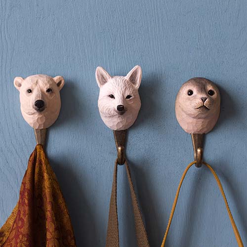 Die schlaue Natur der Arktis wird in Form eines handgeschnitzten Hakens zu einem nützlichen Innendetail.