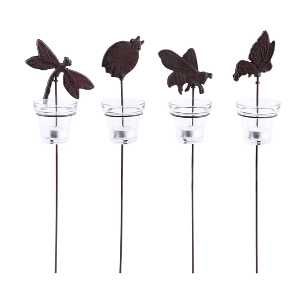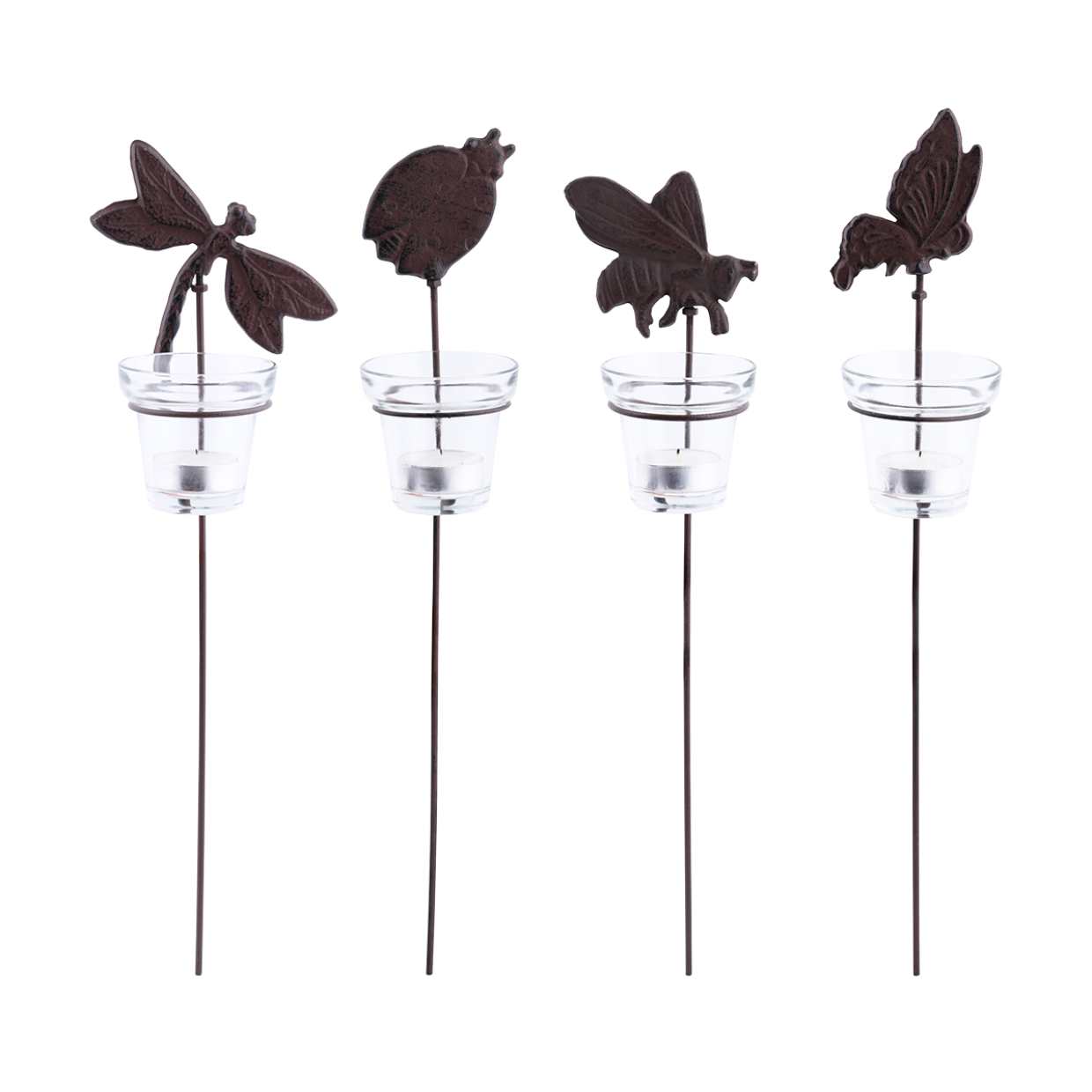 Dank ihrer dankbaren Arbeit sollten Insekten in keinem Garten fehlen. Diese Insekten sorgen für ein stimmungsvolles Schauspiel. Das Glasgefäß schützt das Teelicht vor Wind. Diese dekorativen gusseisernen Insekten auf einer Nadel werden nach jahrhundertealter Handwerkskunst und Tradition einzeln von Hand gegossen.
