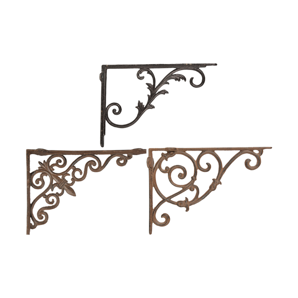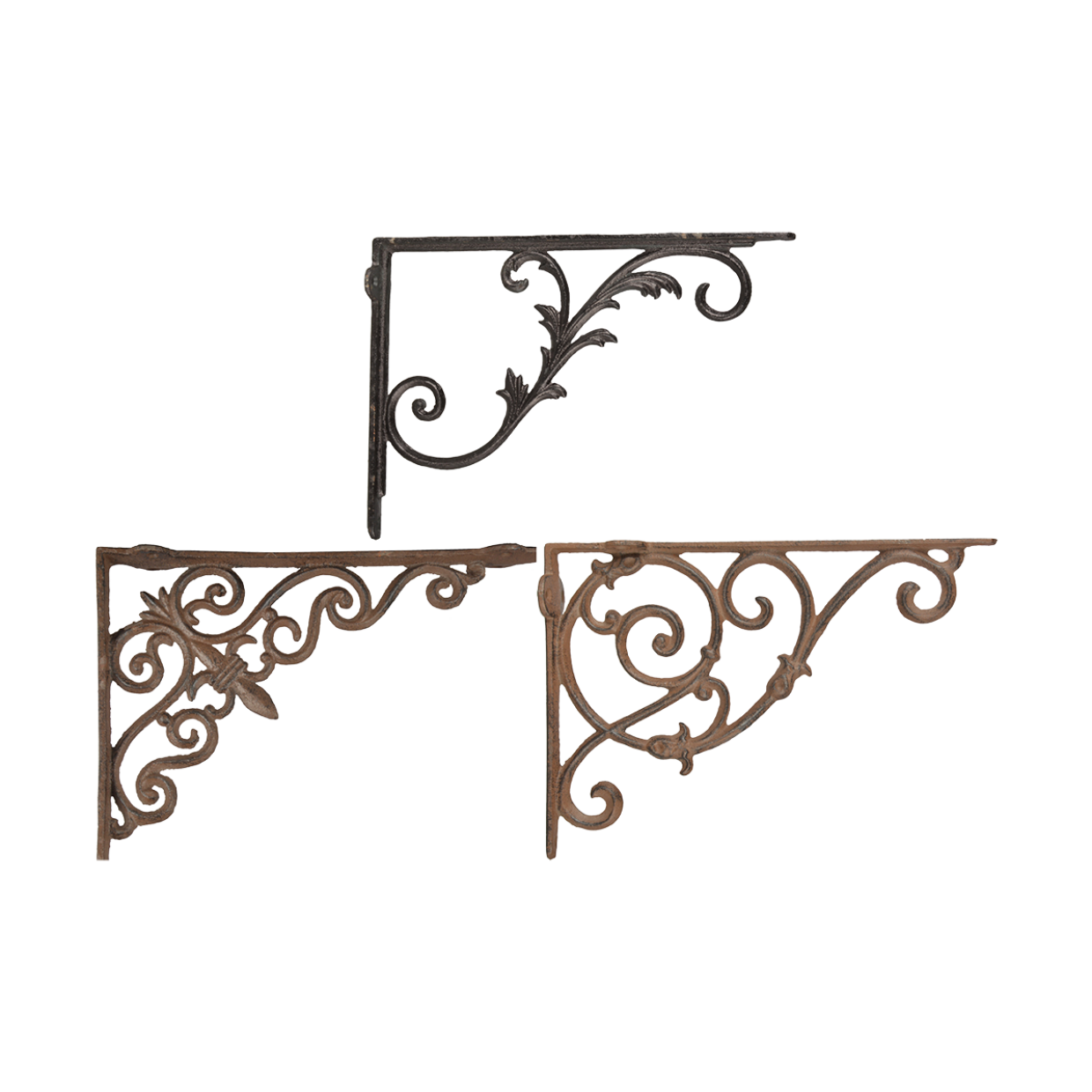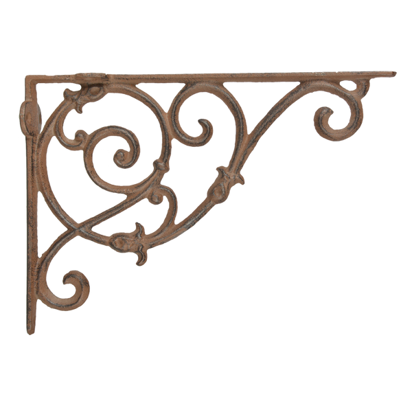 Dieser Regalträger kann sowohl im Innen- als auch im Außenbereich verwendet werden. Befestigen Sie die Stützen an der Wand und stellen Sie ein Regal auf die Stützen. Das schafft Platz für zum Beispiel Bücher oder Töpfe mit Pflanzen. Diese dekorative Gusseisenstütze wird nach jahrhundertealter Handwerkskunst und Tradition einzeln von Hand gegossen.