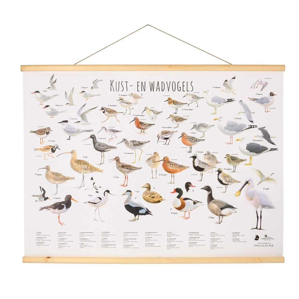 Erfahren Sie mit diesem schönen Wandposter mehr über Küsten- und Wattvögel. Alle gängigen Küsten- und Wattvögel wurden von Elwin van der Kolk originalgetreu gezeichnet. Sowohl die niederländischen als auch die lateinischen Namen jeder Art sind aufgeführt. Sie können auch sehen, ob es sich um einen jährlichen Besucher oder einen Zugvogel handelt und falls unterschiedlich, ein Männchen oder ein Weibchen.