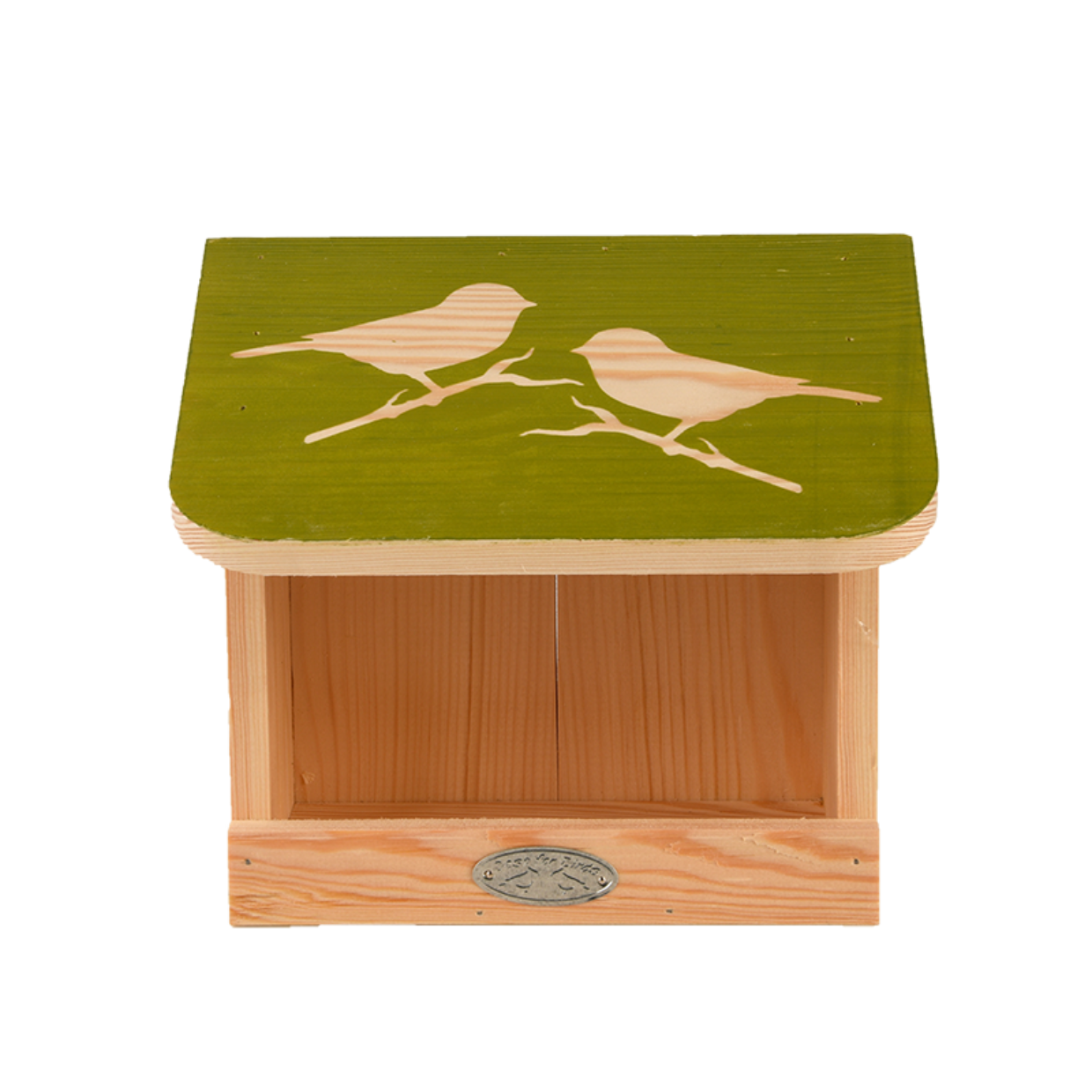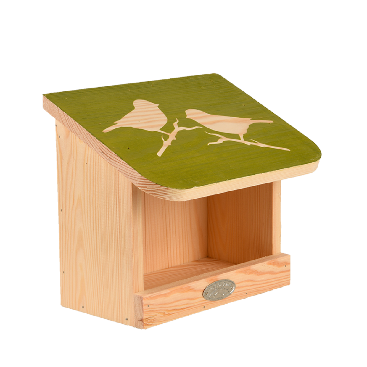 Dieser funktionale Futtertisch zur Wandmontage bietet mehrere praktische Funktionen. Das Nachfüllen erfolgt ganz einfach durch Anheben des Daches. Der erhöhte Rand dient als Sitzstange und schafft so einen separaten Futtertrog. Dies reduziert das Krankheitsrisiko.