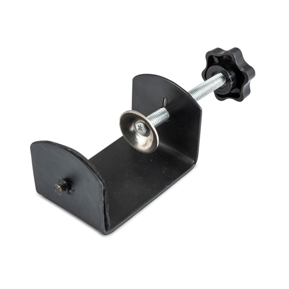 - Bevestig de klem stevig op de reling en zet de schaal waterpas.