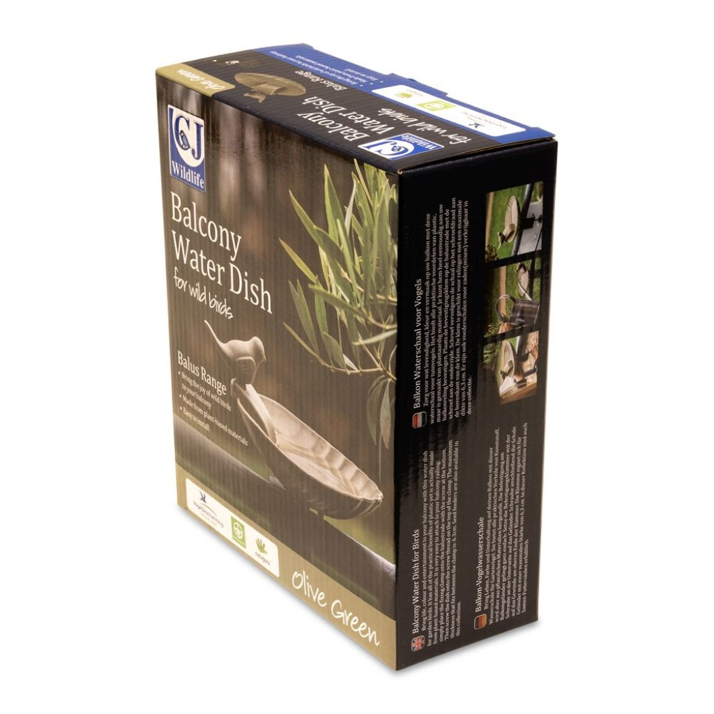 Balkon Waterschaal Balus (olijfgroen) – Verstelbaar vogelbad met klem voor balkons