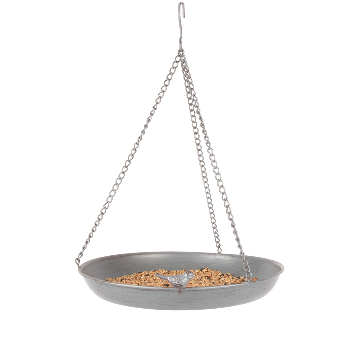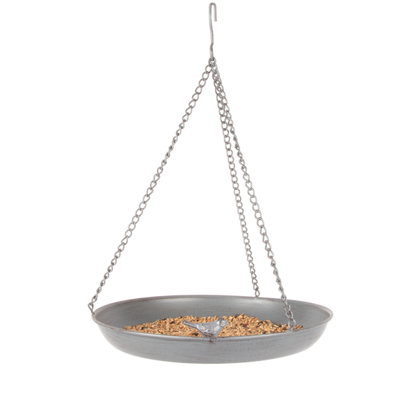 In einem klassischen Garten sind Vogelartikel unverzichtbar. Bieten Sie den Vögeln mit diesem dekorativen Vogelbad eine sichere Trinkstelle. Dank der mitgelieferten Kette kann diese graue Metallschale in der Nähe eines Fensters oder einer Terrasse aufgehängt werden. So lässt sich das Baden der Vögel noch besser genießen. Darüber hinaus kann diese Schüssel auch dazu verwendet werden, den Vögeln Futter anzubieten. Ein Vogel hat bereits seinen Platz am Rand eingenommen. Andere Vögel können sicherlich nicht mehr lange warten. Platzieren Sie es an einer sichtbaren Stelle, damit Vögel leicht in das Bad gelangen können.