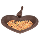 Klassisch gestaltete dunkelbraune Vogeltränke aus Gusseisen auf hohem Stand mit zwei Vögeln am Rand.