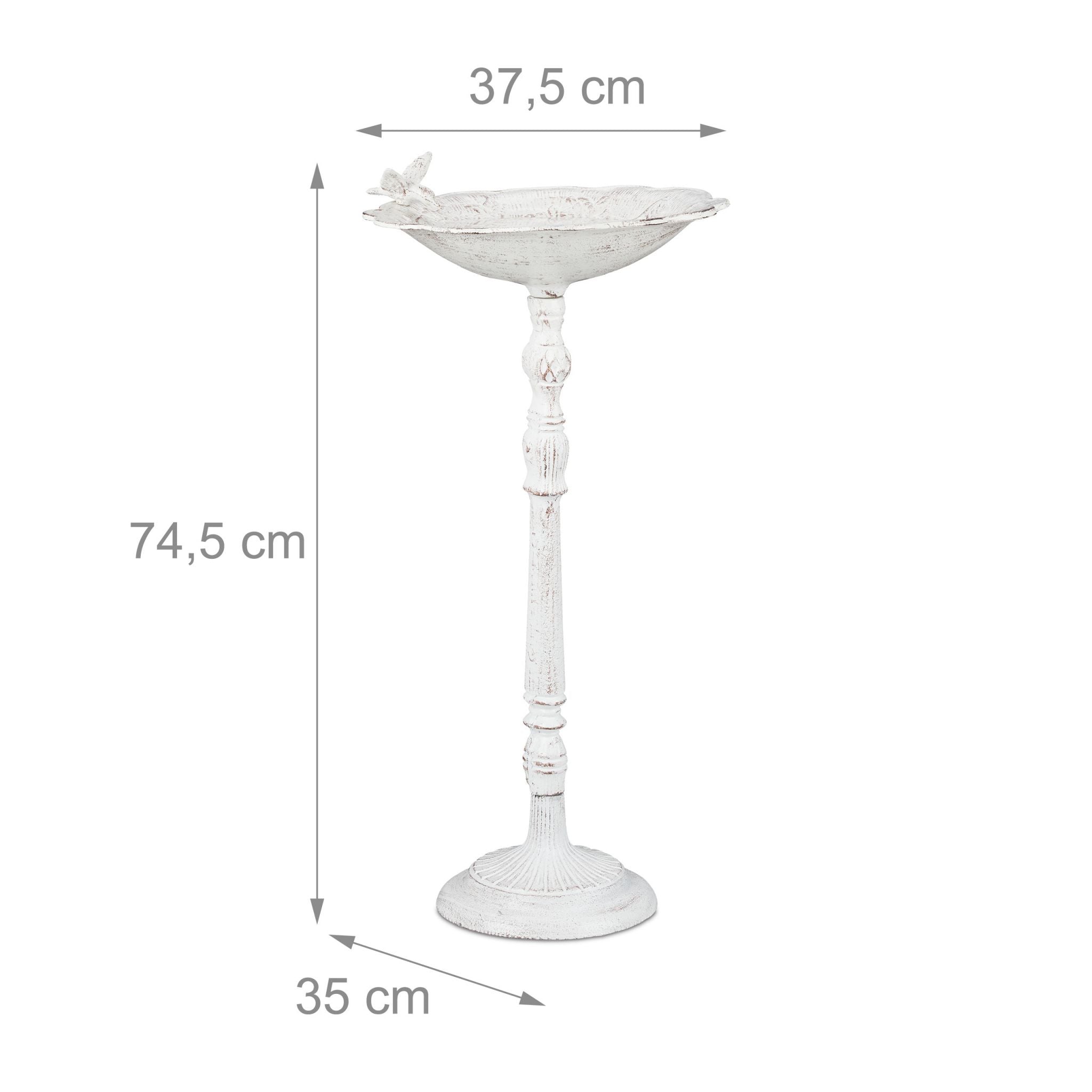 Tun Sie den heimischen Wildvögeln in Ihrem Garten mit diesem Vogelhäuschen etwas Gutes und sorgen Sie für frisches Wasser für Amseln, Meisen und Spatzen. Die große Vogeltränke mit Ständer besticht durch ihr trendiges Vintage-Design. Die Wasserschale des Vogelbades ist mit einem verspielten Blumenmuster versehen. Die Wildvogeltränke besteht aus massivem Gusseisen, ist stabil und mit wenigen Handgriffen aufgebaut.