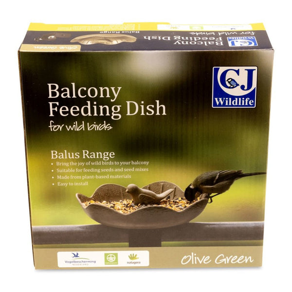 Balkon Voederschaal Balus (olijfgroen) – Compacte voederschaal met klem voor balkons