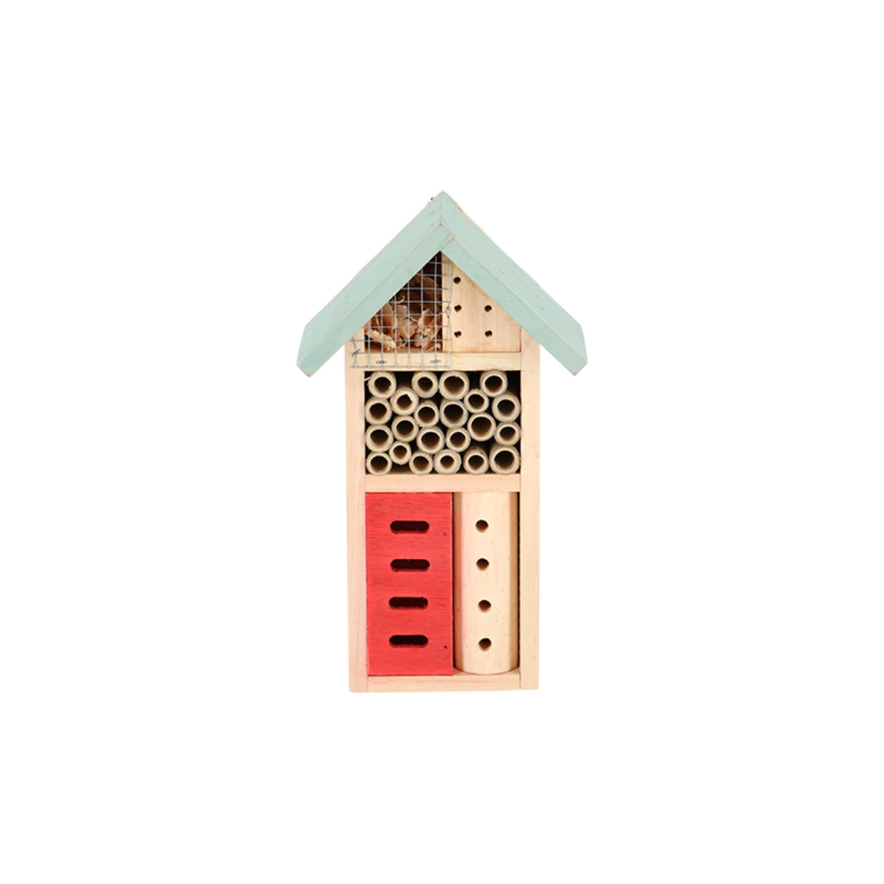 Insekten erfüllen viele wichtige Aufgaben in Gärten. Sie bestäuben Pflanzen und wirken als natürliches Abwehrmittel gegen Schädlinge. Dieses Haus bietet solitären Bienen, Marienkäfern und anderen Insekten eine Nist- und Überwinterungsmöglichkeit.