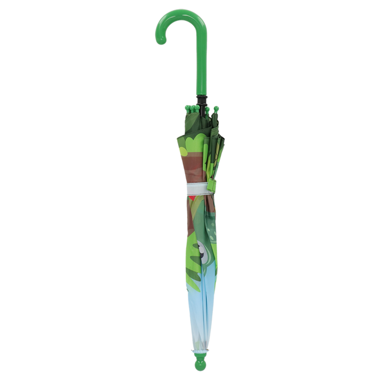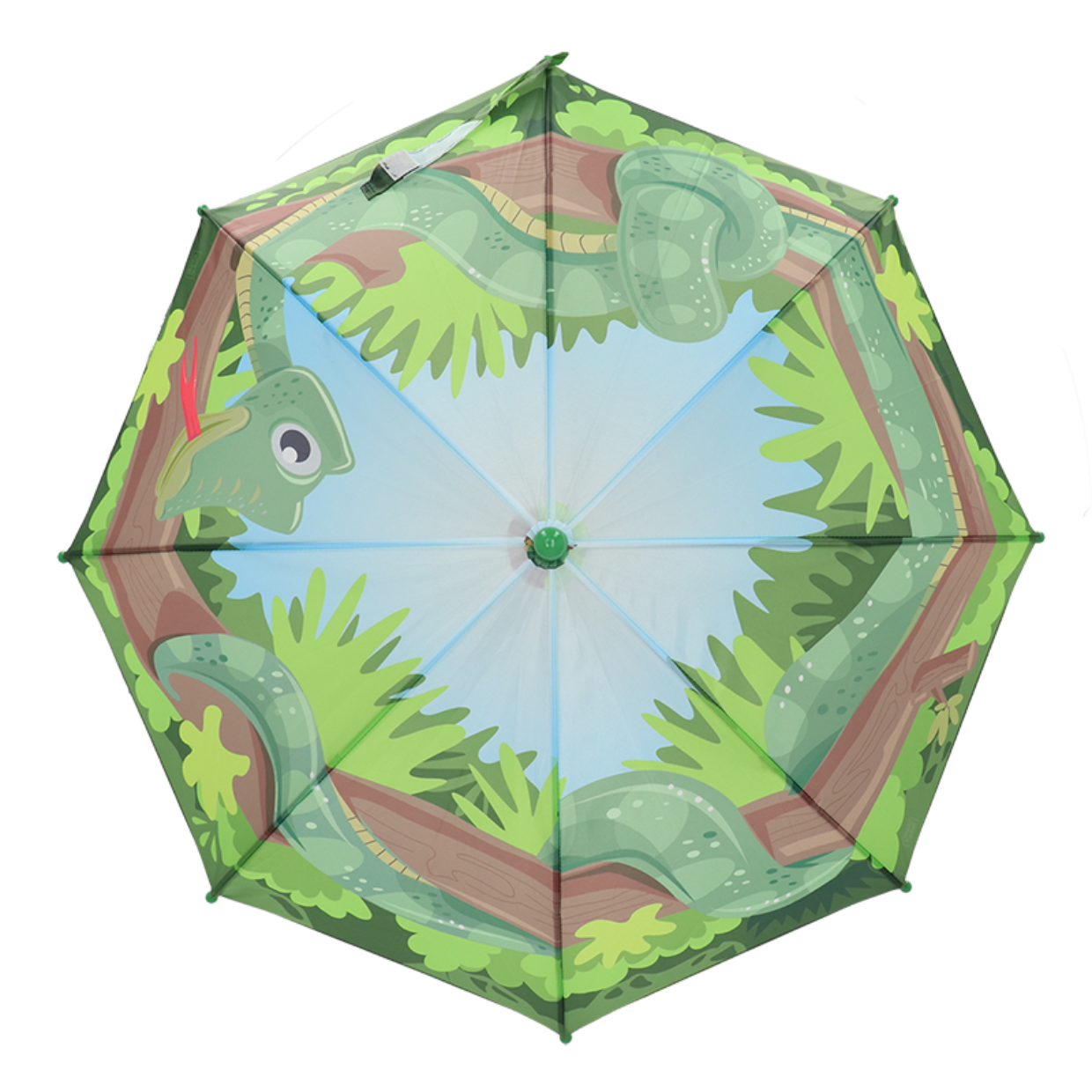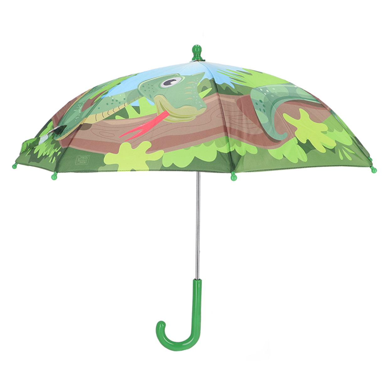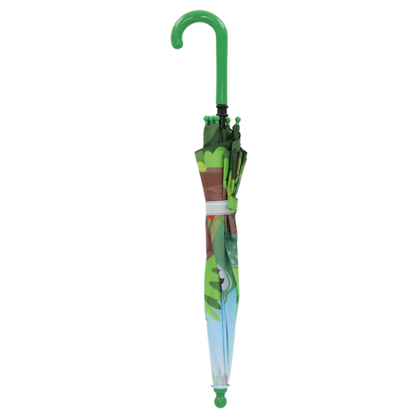 De **Esschert Design Kinderparaplu “Panorama Slang”** is een vrolijke en functionele regengezel voor kinderen. Met een doorschijnend PVC-tentdoek bedrukt met kleurrijke slangenmotieven en een stevig donkergroen handvat, bescherming en plezier gegarandeerd bij nat weer.