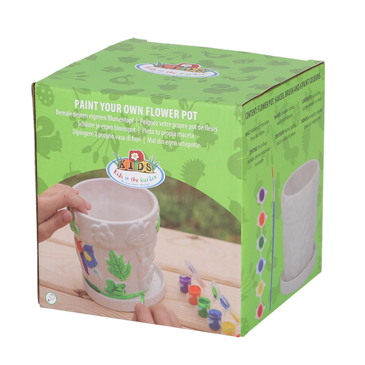 De Esschert Design PIY Bloempot Insecten (KG298) is een leuke en creatieve speel- en educatieve DIY-set voor kinderen. De pot is gemaakt van stevig dolomiet en wordt compleet geleverd met 6 verfkleuren, een kwast en onderbordje – ideaal om zelf in te kleuren en daarna te gebruiken als bloempot.