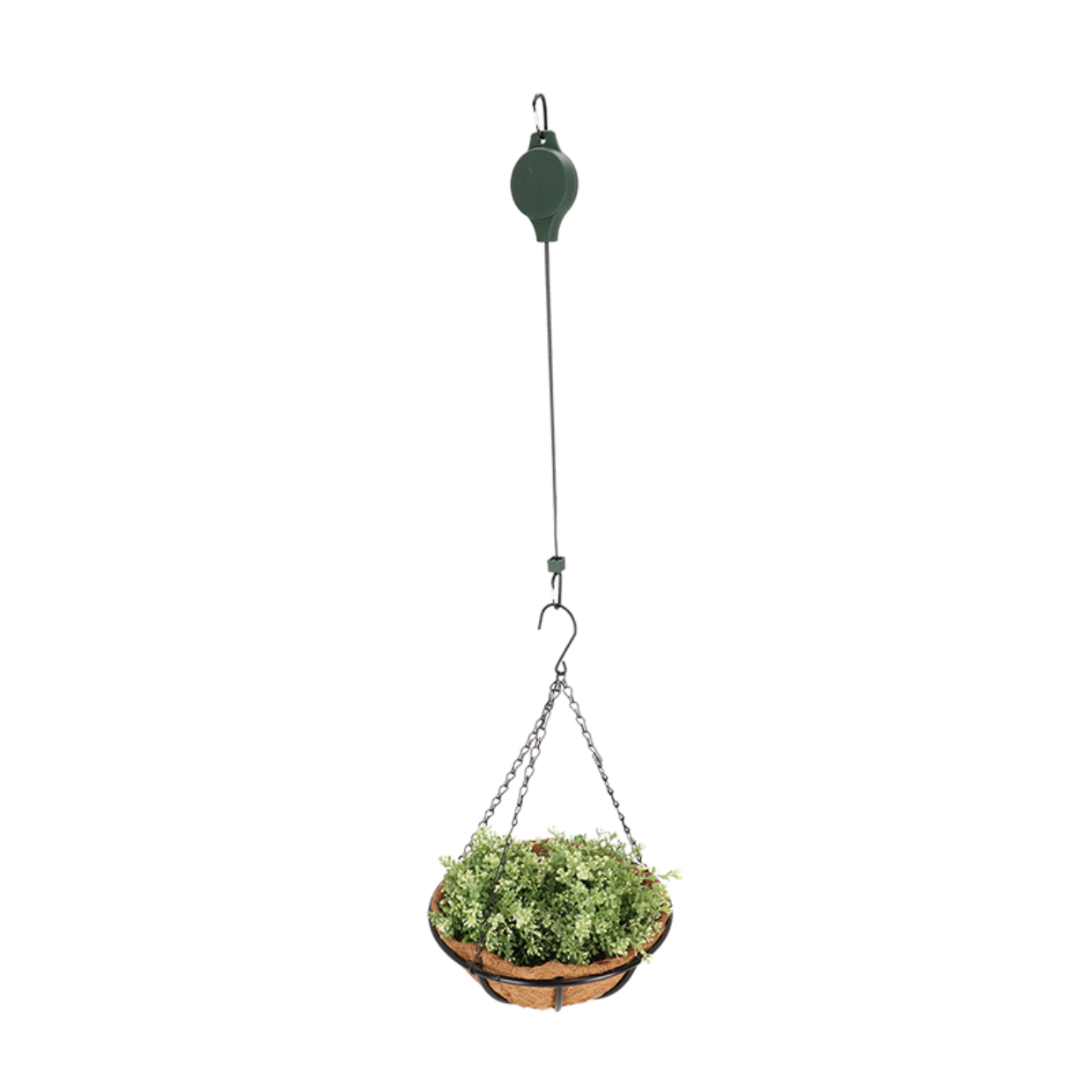 Ein praktisches Hilfsmittel, das das Gießen und Pflegen von Hängekörben einfach und sicher macht. Dank des cleveren Flaschenzugsystems lässt sich der Korb ganz ohne Leiter leicht anheben und absenken. Eine praktische Lösung für kleinere Menschen, die hoch hängende Pflanzen nicht immer erreichen können, aber auch für ältere Menschen, die keine gefährliche Leiter mehr benötigen.
