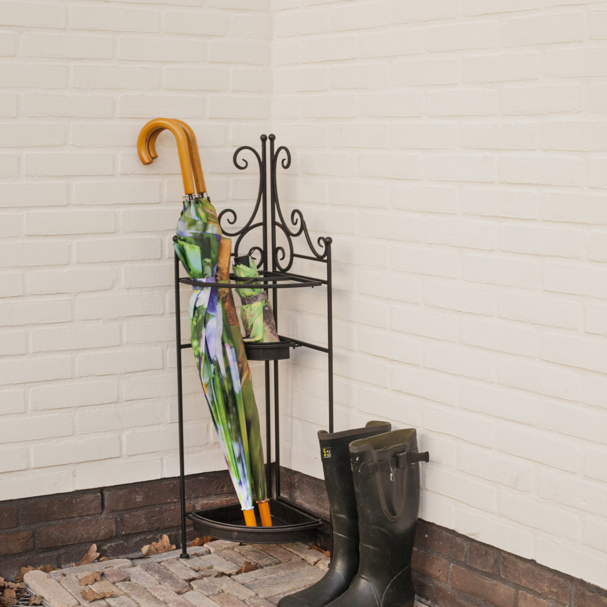 Dieser schwarze Schirmständer hat ein zeitloses Design und ist eine echte Bereicherung für jeden Flur oder Korridor. Der Schirmständer eignet sich für unterschiedliche Schirmtypen, sodass diese ordentlich verstaut werden können.