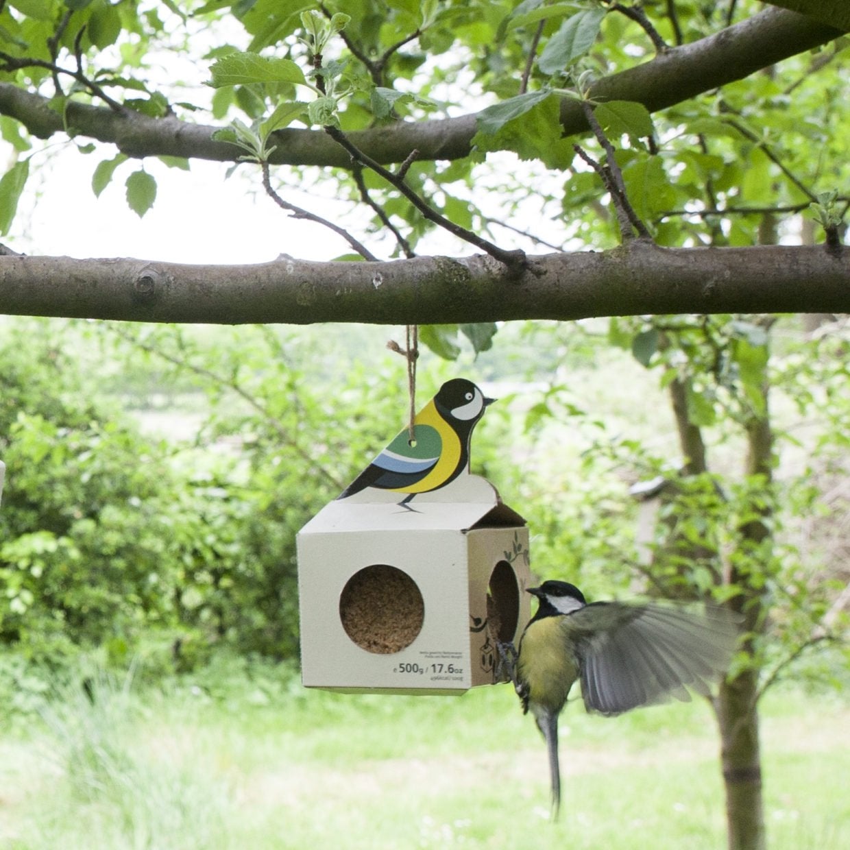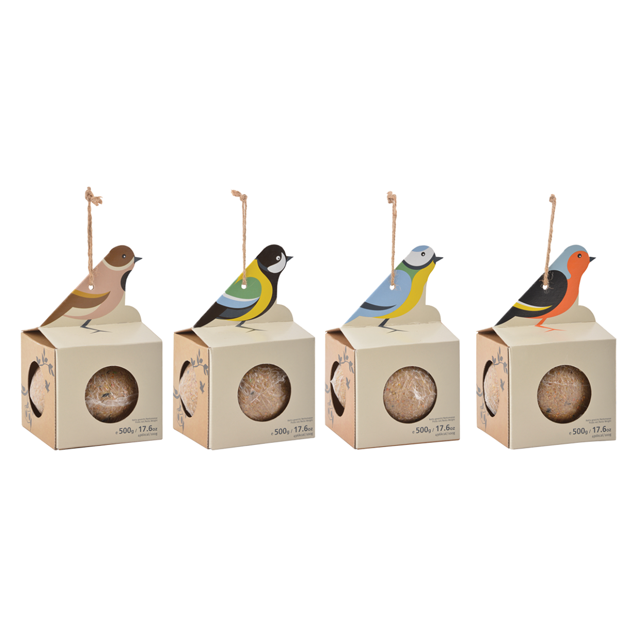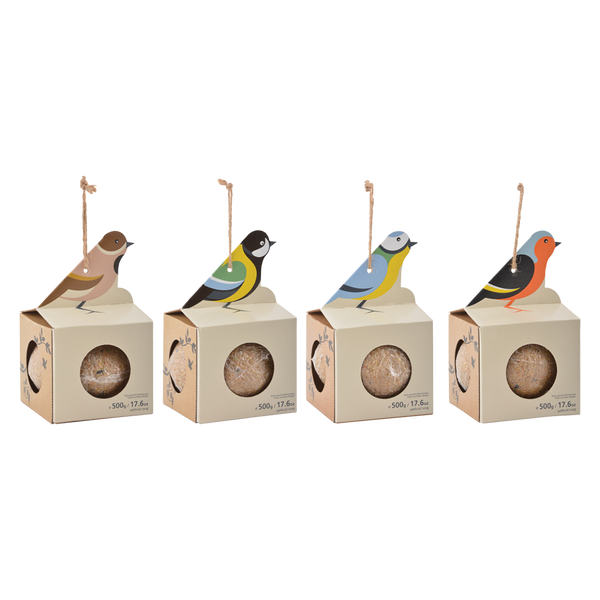 Dieser Meisenknödelhalter mit einer riesigen 500gr Meisenknödel ist bereits einsatzbereit und wird sofort aufgehängt. Die Fat Ball ist bereits in diesem quadratischen Kartonhalter verpackt, der sich dank der Kordel auch ganz einfach im Garten aufhängen lässt. Die vier Öffnungen bieten mehreren Vögeln gleichzeitig die Möglichkeit, den Fettballen zu erreichen. • 4-fach sortiert • gefüllt mit einem riesigen 500g-Fettknäuel • inklusive naturbelassenem Juteseil • Preis ist 1 Stück, eine zufällige Farbe wird geliefert.