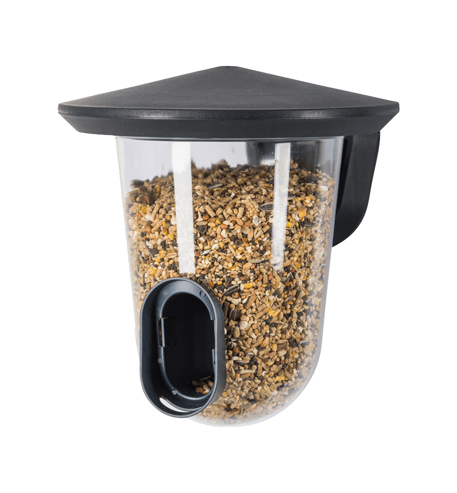 Sowohl das Design als auch die Funktion des feedR sind gut durchdacht. Sie können genau sehen, wie viel Essen darin ist. Befestigen Sie dieses Produkt mit dem mitgelieferten Klettverschluss oder mit Schrauben. Und auch das Reinigen oder Nachfüllen des feedR ist einfach, Sie können den Boden mit einem Handgriff lösen und befestigen.