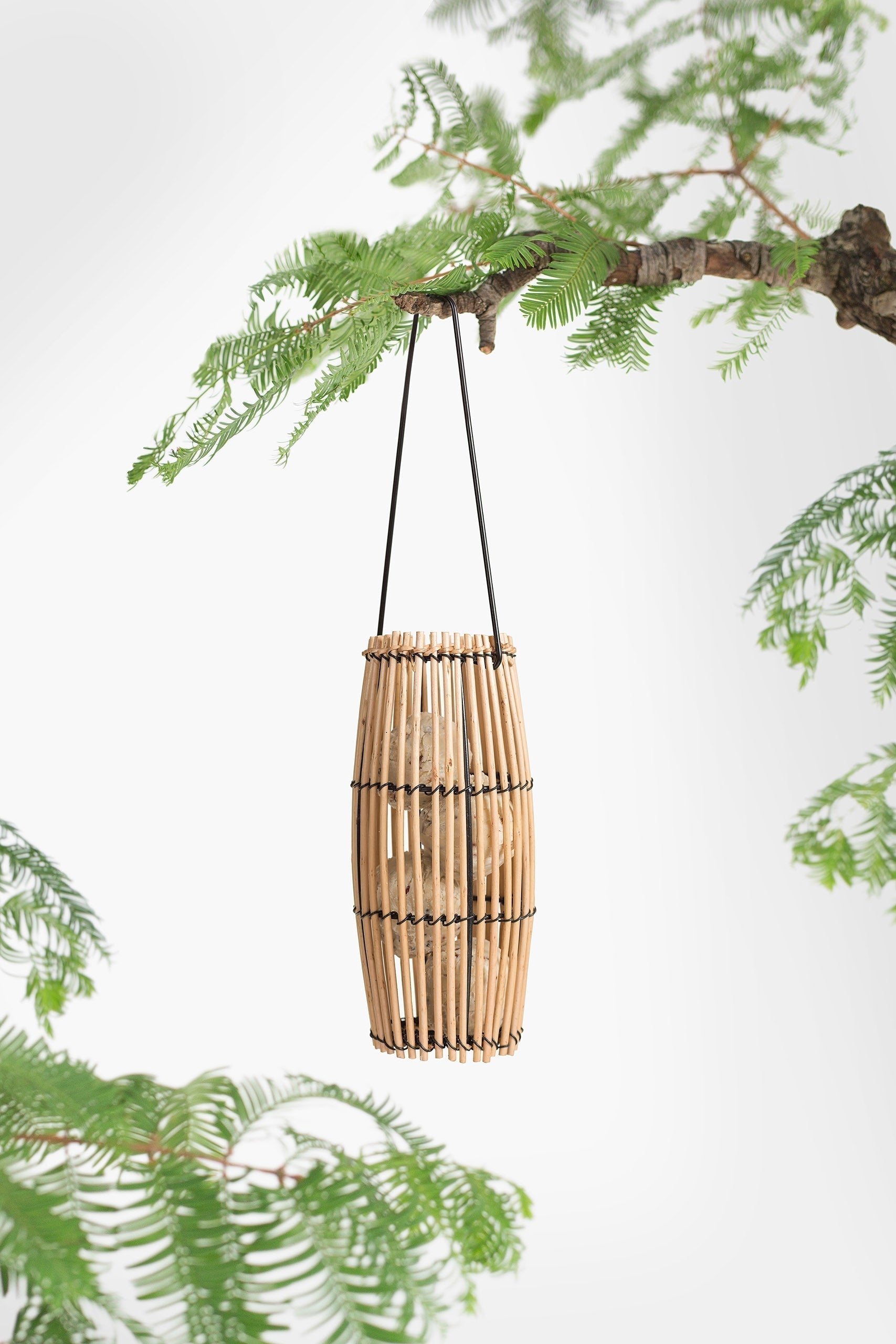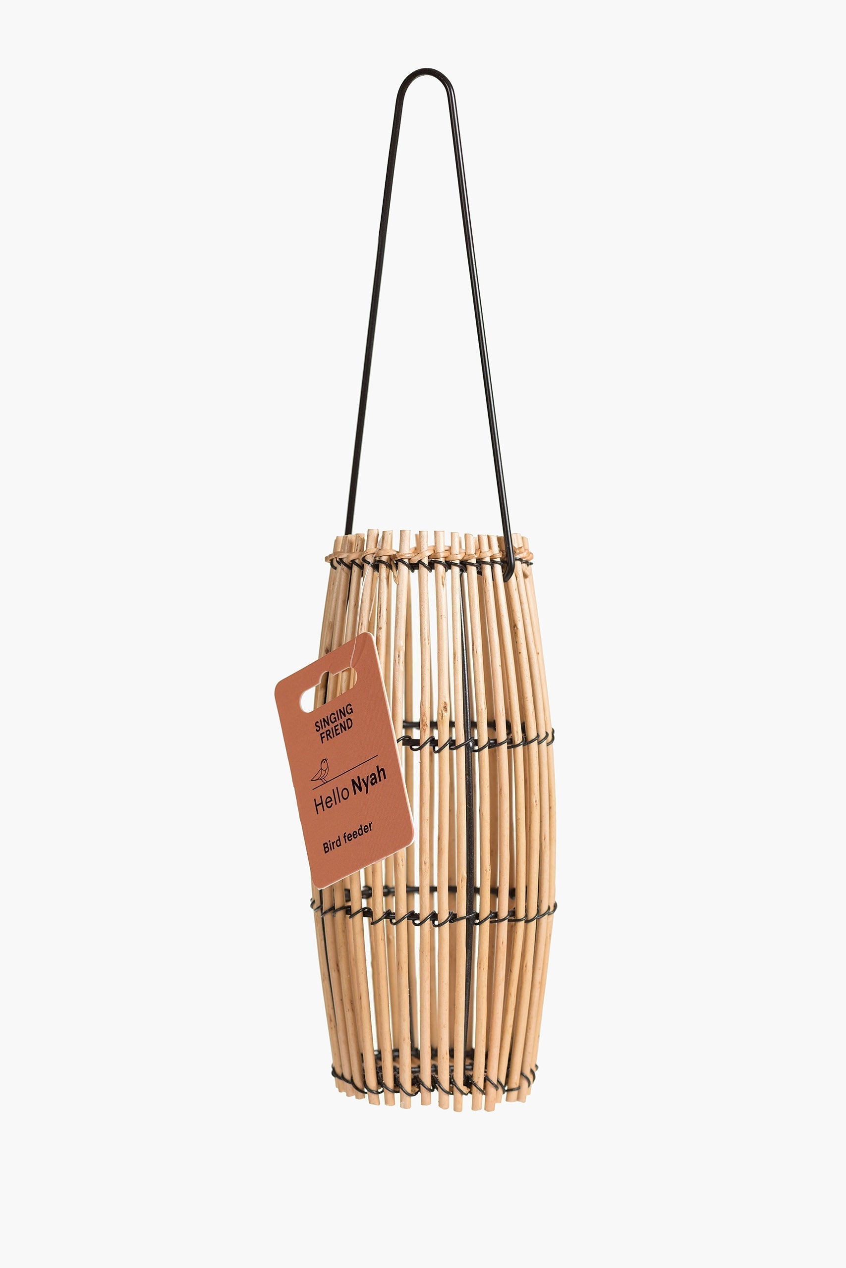 Nyah verdankt sein natürliches Aussehen der Verwendung von Weidenzweigen. Sie nutzt die flexiblen Eigenschaften der Weide ideal aus. Einige sehen Nyah als Fayas kleine Schwester und wir verstehen warum. Nyah lässt sich einfach von oben befüllen und ist durch seine vertikale, schmale Struktur ideal für Erdnüsse, Sonnenblumenkerne oder anderes kleineres Vogelfutter. Mit dem Aufhängesystem aus Eisen können Sie es dann ganz einfach an einem Ast im Garten oder an einem Haken auf dem Balkon aufhängen. Abmessungen 29 x 10 cm