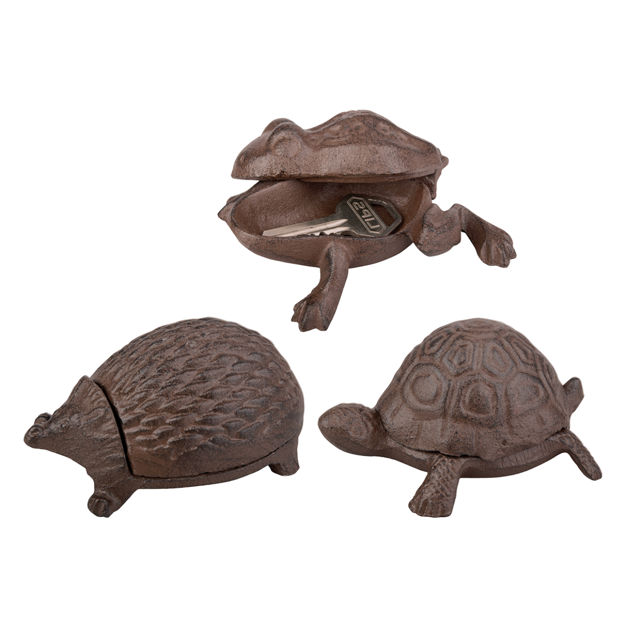 Nie wieder vor verschlossener Tür stehen und immer wissen, wo der Ersatzschlüssel ist. Diese dekorativen Tierfiguren sind ein gutes Versteck für Schlüssel. Die gusseisernen Tiere werden nach uralter Handwerkskunst und Tradition von Hand gegossen.