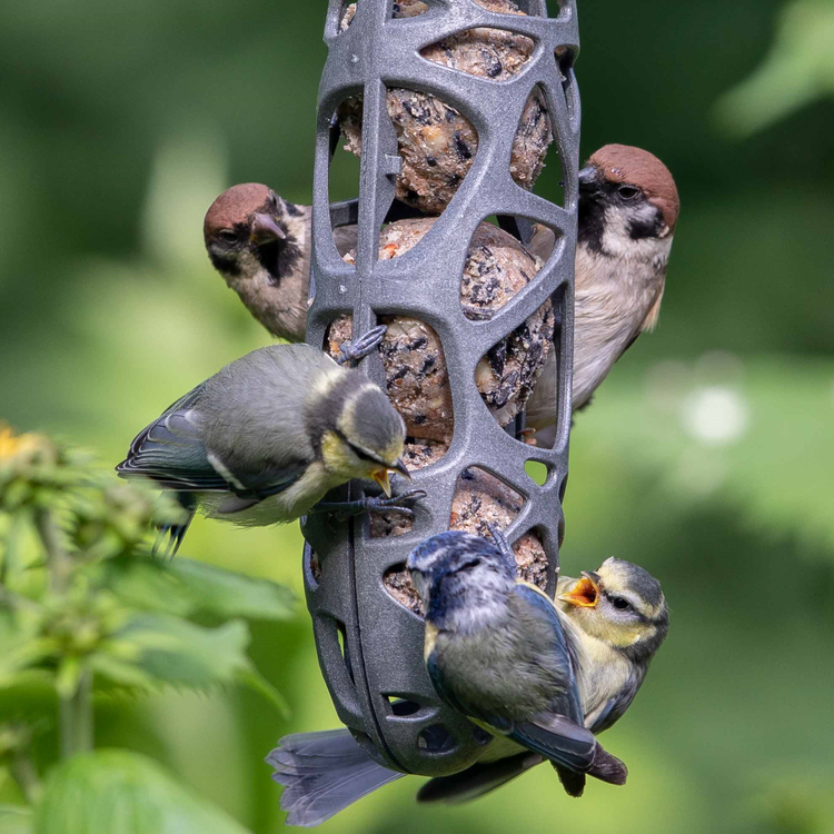 100 % recyceltes Vogelhäuschen, hergestellt aus dem Inneren von Getränkesaftverpackungen. Einzigartig auf dem Markt! Speziell für Meisenknödel / Meisenknödel und Nistmaterial hergestellt.