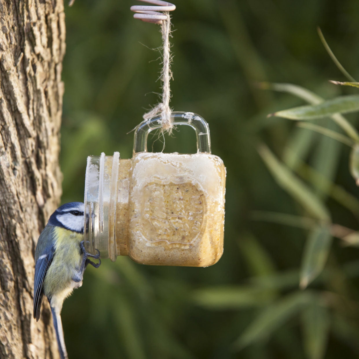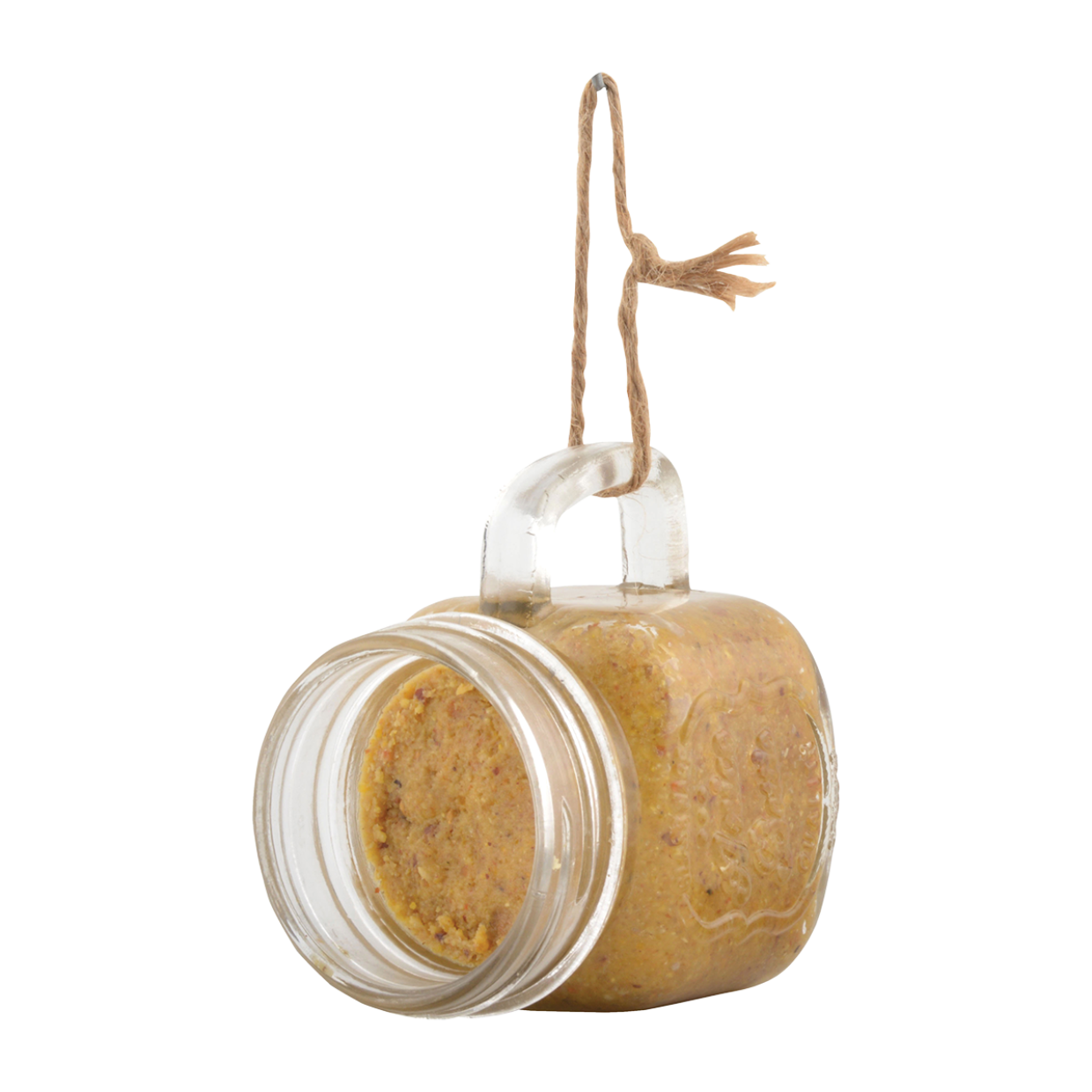 Eine fertige Lösung zum Füttern von Vögeln im Garten ist dieser mit Erdnussbutter gefüllte Becher. Die Erdnussbutter ist speziell für Vögel formuliert und enthält kein für Tiere schädliches Salz. Hängen Sie den Becher einfach mit dem mitgelieferten Juteseil auf.