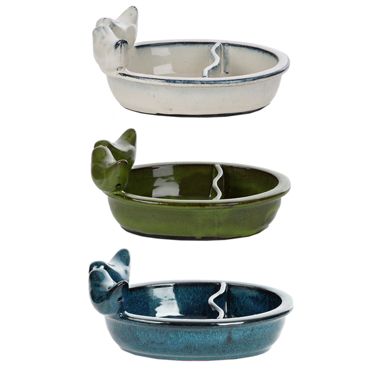Diese Futter- und Trinknäpfe verfügen über zwei Kammern und können mit Wasser und Futter befüllt werden.