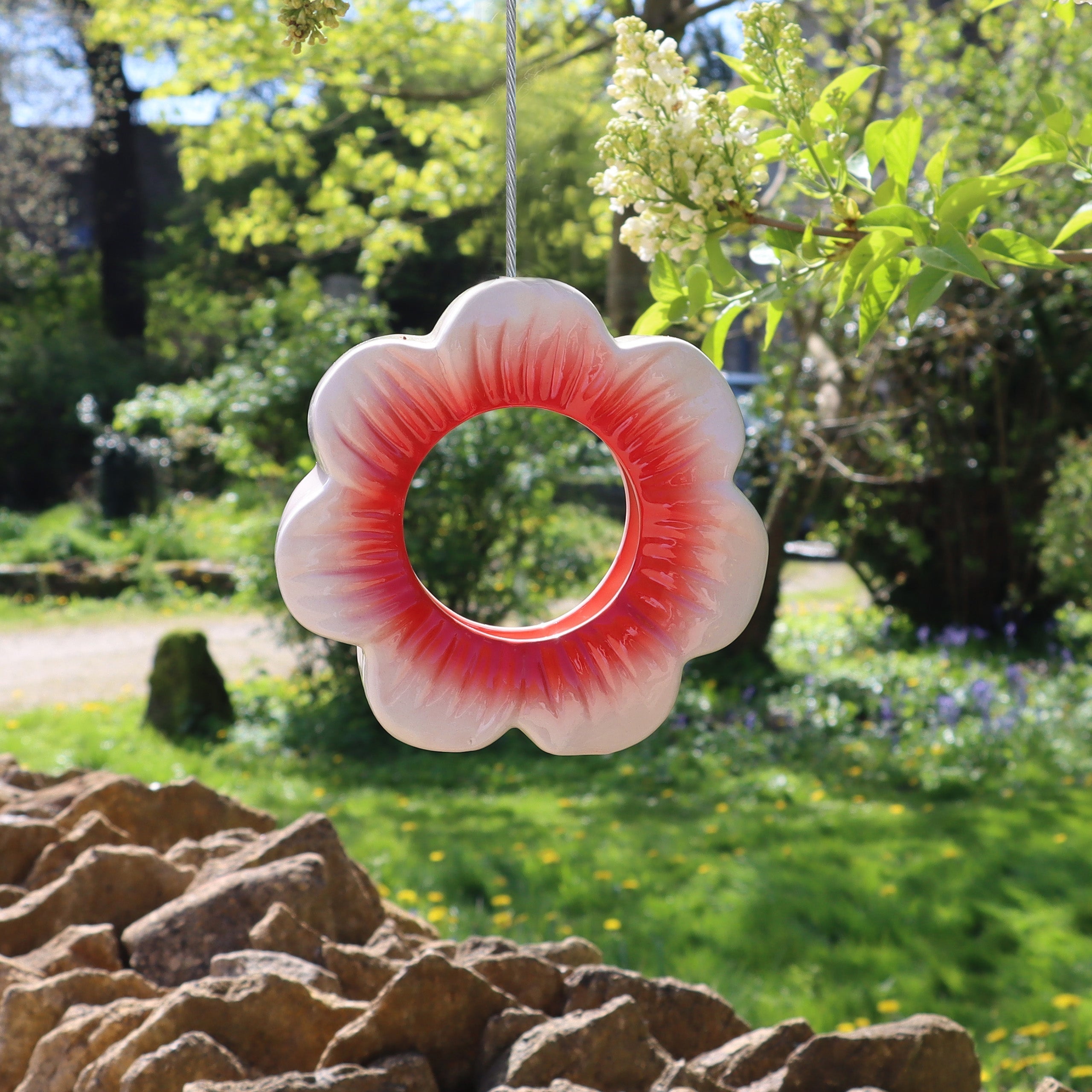 Der hängende Vogelfutterspender „Wild Poppy“ aus Keramik ist mehr als nur ein Vogelfutterspender. Er bringt anhaltende Farbe und Freude in Ihren Garten. Genießen Sie die lebendige Anziehungskraft einer ewig blühenden Mohnblume, während Sie Ihre gefiederten Freunde in Ihrer Oase im Freien willkommen heißen.